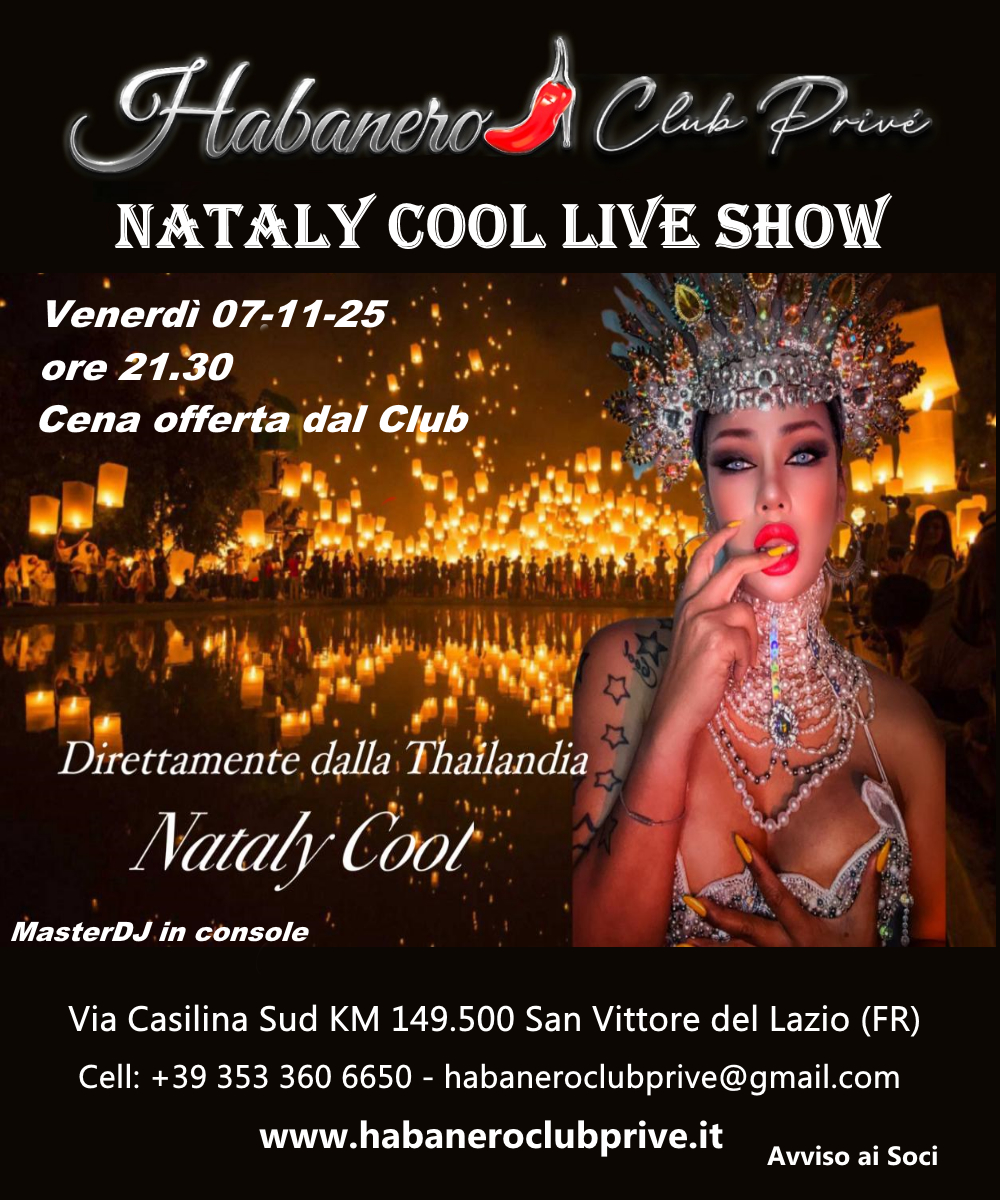Venerdì 07-11-2025 Ore 21.30 Direttamente dalla Thailandia la Famosissima Pornostar Natalya Cool che sul palco…